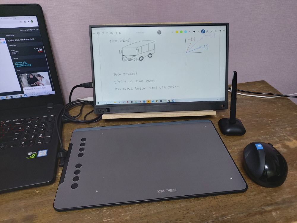 제가 요즘 꽤 만족스럽게 사용하고 있는 아이템이 있습니다. 바로 XP-PEN에서 만든 Deco 01 V2 타블렛입니다. 선형대수학 강의 글을 요즘 시리즈로 작성하고 있는데, 설명하는데 필요한 수많은 수식과 그래프를 코딩과 파워포인트 등으로 제작하려니, 쓸데없이 시간이 너무 많이 소요되더라고요. 그래서 어떤 방법이 없을까 해서 고민하다가, 타블렛을 하나 구입했습니다.