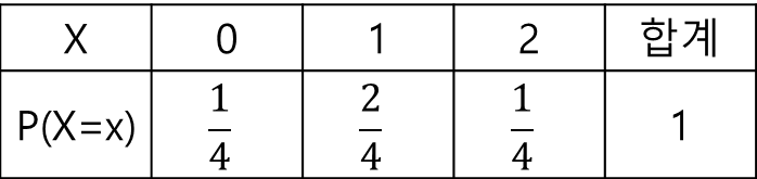서로 다른 두 개의 동전을 동시에 던져서 나오는 앞면의 개수를 확률변수 X라고 할 때, X의 평균, 분산, 표준편차를 각각 구하라.