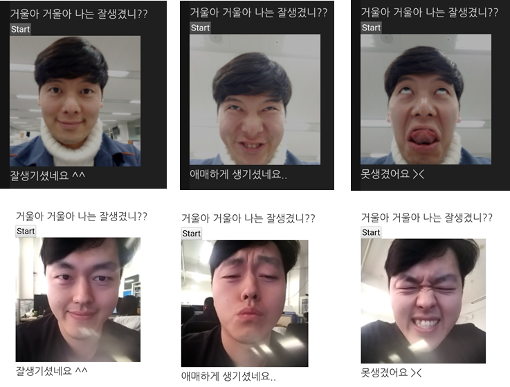 친구와 제가 테스트해봤습니다. ㅋㅋ 친구는 휴대폰으로, 저는 노트북으로. 표정에 따라 다르게 반응하네요. ㅎㅎ 얼추 맞는거 같기도 하고요?