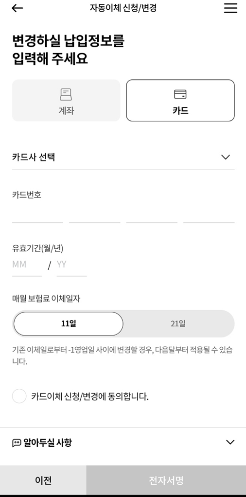그런데 알고 보니 한화손해보험 앱에서도 자동이체 변경이 가능하더군요.