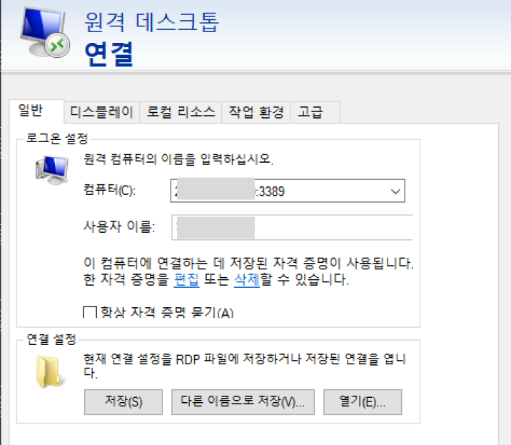 이제 윈도우 PC에서 원격 데스크톱 연결을 실행합니다. 컴퓨터(C)에 "공인IP주소:3389"를 입력하시고, 사용자 이름에는 이 PC에 로그인할 때 사용하는 계정을 입력해주시면 됩니다. 그 다음 연결 버튼을 누르면 비밀번호를 요구할 텐데 비밀번호가 맞으면 원격 접속에 성공합니다.