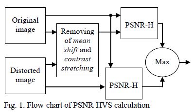 PSNR-HVS는 PSNR에 HVS의 특성을 추가적으로 고려한 방법들이다. PSNR-HVS의 순서도는 다음과 같다.