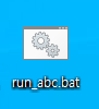이렇게 세팅하신 후에 저장을 해주시면 바탕화면에 run_abc.bat이라는 배치파일이 생성되어 있는 것을 확인하실 수 있을 것입니다. 톱니바퀴 모양의 아이콘을 찾으시면 됩니다.