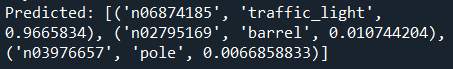 미리 훈련된 MobileNet이 위 사진이 traffic_light, 신호등에 관한 것임을 잘 분류해냈죠? 0.9665834, 약 97%의 확률로 신호등이라고 판단했습니다.
