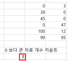 0보다 큰 8개의 데이터의 개수를 잘 세어낸 것을 확인할 수 있습니다.