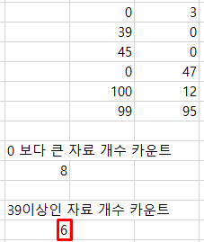 이번에는 39 이상인 데이터의 개수를 세어보겠습니다.