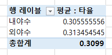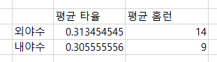 [확인] 버튼을 클릭하면, 평균 타율이 잘 구해진 것을 확인할 수 있습니다.