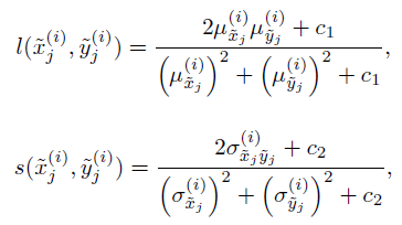 결과적으로 입력 이미지를 비교함으로 3개의 l 점수, 3개의 s 점수를 얻게 되고(r, g, b 채널 이미지), 64개+128개+256개+512개+512개의 l 점수 및 s 점수를 얻게 됩니다. 그것들에 가중치들을 부여해서 모두 합한 다음에 1에서 뺌으로 최종 점수를 얻게 됩니다.