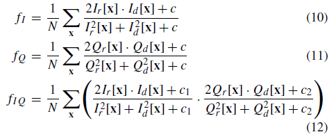 DoG를 사용하면 사실상 색상 정보는 모두 잃게 되므로, 색상 정보의 품질을 측정하기 위해서 RGB 색공간을 YIQ 색공간으로 변환하여 색상 정보를 담고 있는 I 채널과 Q 채널의 유사도를 다음과 같은 공식으로 계산한다. 결과적으로 한개의 품질 점수를 더 얻게 된다.
