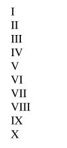 이상의 코드가 로마숫자 1부터 10까지에 대한 코드입니다. LaTeX에 위 코드를 기입하고, 실행하면 다음과 같은 화면이 출력됩니다.