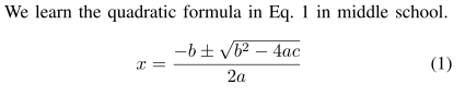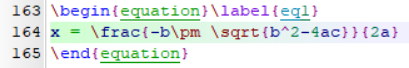 저는 근의 공식을 만들어서 넣어주겠습니다. 이 수식의 라벨명은 eq1로 지어주겠습니다.