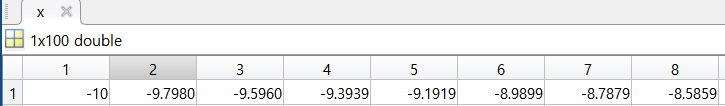 x = linspace(-10, 10);