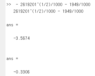 왜인지는 잘 모르겠지만, 이런 형태로 해가 출력되었습니다. 이때는 위 결과를 그대로 명령 창에 넣어주면 계산된 결과가 나옵니다.