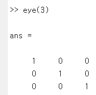 어떤 행렬에 identity matrix를 곱하면 자기 자신이 나온다. eye함수를 이용하면 identity matrix를 생성해낼 수 있다. 활용법은 아주 간단하다. eye안에 몇 차원의 정방행렬인지 입력만 해주면 된다.