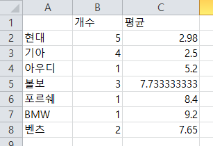 나머지 브랜드의 평균 금액도 드래그해줌으로 구합니다.
