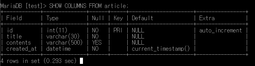 MariaDB [test]> SELECT * FROM article;