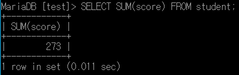 MariaDB [test]> SELECT SUM(score) FROM student;