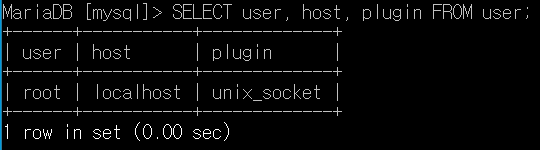 또한 user 테이블에서 root 사용자의 plugin이 무엇으로 설정되어 있는지 확인해볼 필요가 있습니다.