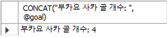 SELECT CONCAT("부카요 사카 골 개수: ", @goal);