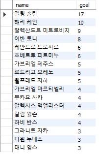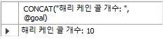 해리 케인 선수의 골 개수가 @goal에 담기고 다음 행에 있는 SELECT 문을 통해서 보여집니다.