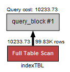 10만 개의 행이 있는 indexTBL이라는 테이블이 있다고 가정하겠습니다. first_name, last_name, hire_date 세 개의 컬럼으로 구성되어 있고요. 이 테이블의 스키마는 다음과 같습니다.