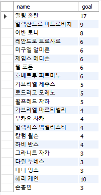 우선 실습을 위해 다음과 같은 간단한 테이블을 만들었습니다. 이 테이블의 이름은 epl입니다.