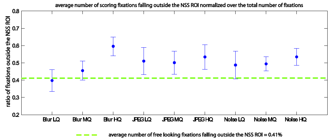 그럼 실질적으로 어떻게 DSS가 NSS에서부터 달라지는가를 살펴볼 차례다. 저자들은 저품질의 이미지를 평가할 때 고품질의 이미지를 평가할 때에 비해 관심 영역의 넓이가 작아졌다는 것을 발견했다. 그 이유는 저품질의 이미지를 평가할 때는 고품질 이미지를 평가할 때에 비해 시선이 배경쪽으로 분산됨으로 이미지 내에서 충분한 관심을 받은 부분이 줄어든 것이다.