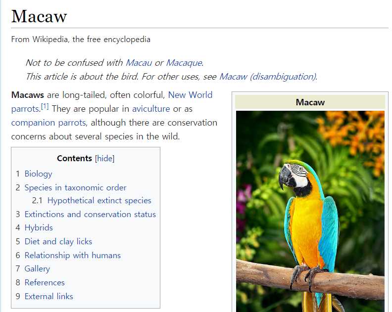 위키피디아에서 macaw가 뭔지 찾아봤습니다.