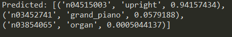 grand_piano(그랜드 피아노)는 다들 어떻게 생긴 피아노인지 아실 것이고. ResNet50이 업라이트 피아노와 그랜드 피아노도 구분할 수 있는 능력을 가지고 있다는 것이 놀랍습니다.