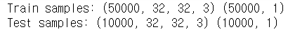 train_images = train_images.reshape((50000, 32, 32, 3))