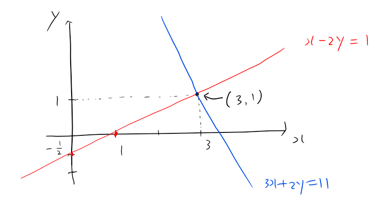 보시다시피, 이 선형시스템의 해는 x = 3, y = 1 입니다.