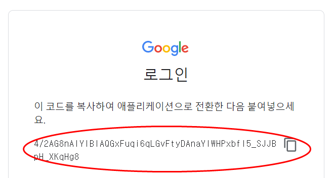그러면 링크가 뜨는데, 링크를 클릭해서 인증 코드를 복사해서 붙여넣어줍니다. 그러면 연동은 끝납니다.