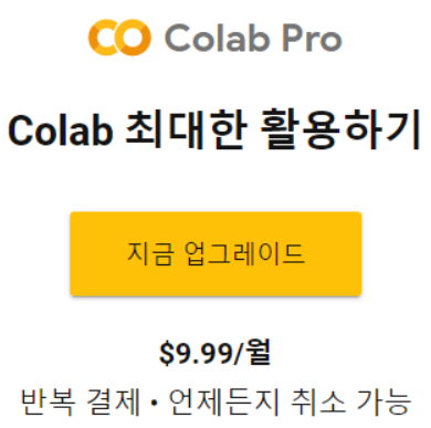 colab pro를 사용한다고 해서 가상머신을 무제한으로 이용가능한 것은 아닙니다. 좀 더 많이, 좀 더 좋은 머신을 이용할 수 있는 것입니다. colab pro 구독 신청은 아래 링크를 통해서 할 수 있습니다.