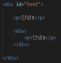 결과는 "안녕1", "안녕2" 모두 빨간색으로 표현됩니다. "아이디가 test인 요소 내 모든 p 요소들의 색상을 빨강으로 해줘"라는 의미가 되기 때문입니다.