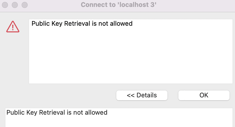 docker로 MySQL을 설치한 후 DBeaver를 통해 연결하려고 하니 다음과 같은 에러 메시지 창이 떴습니다.