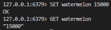 키 watermelon, 값 15000이란 데이터가 잘 삽입되었고, 키가 watermelon인 데이터를 잘 읽어냈습니다.