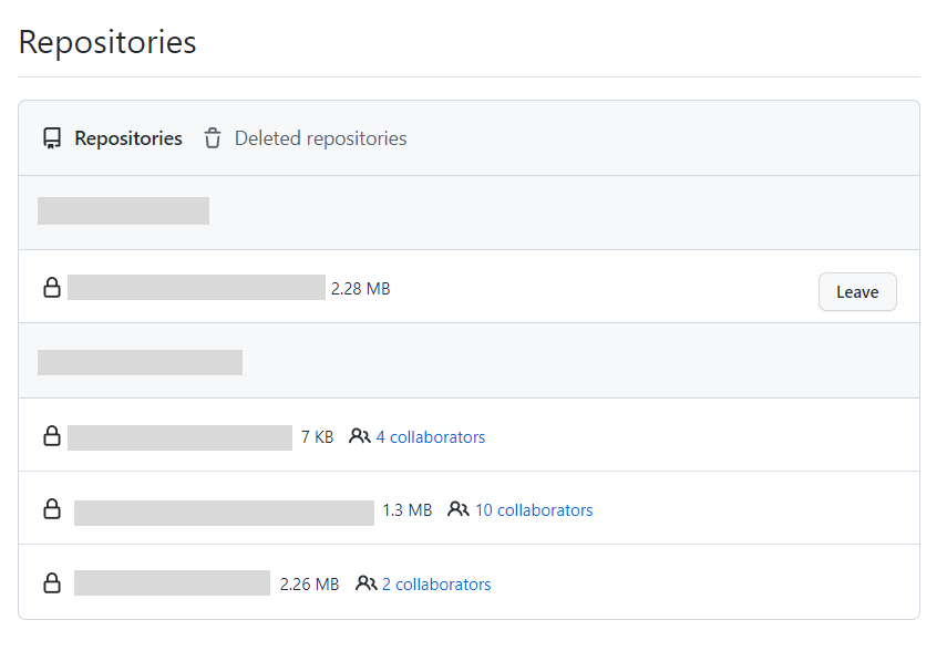 그러면 다음과 같이 본인이 만든 저장소 뿐만 아니라 초대받은 저장소도 보일 것입니다.