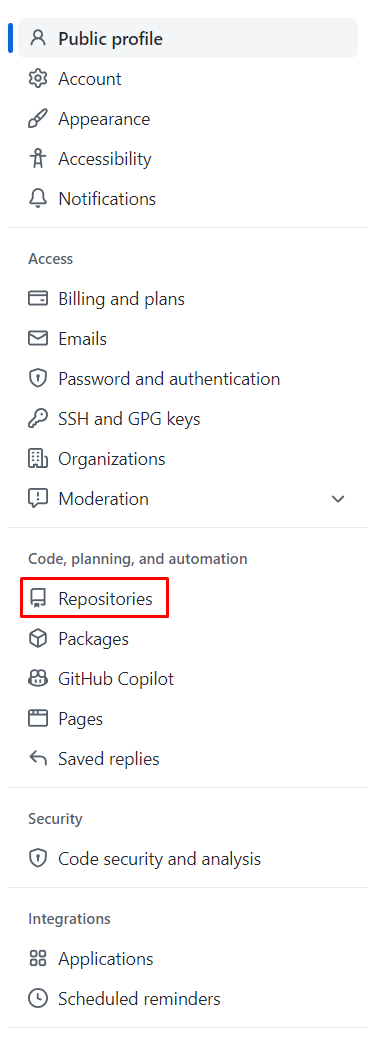 그 다음에는 좌측 사이드바에서 [Repositories]를 클릭합니다.