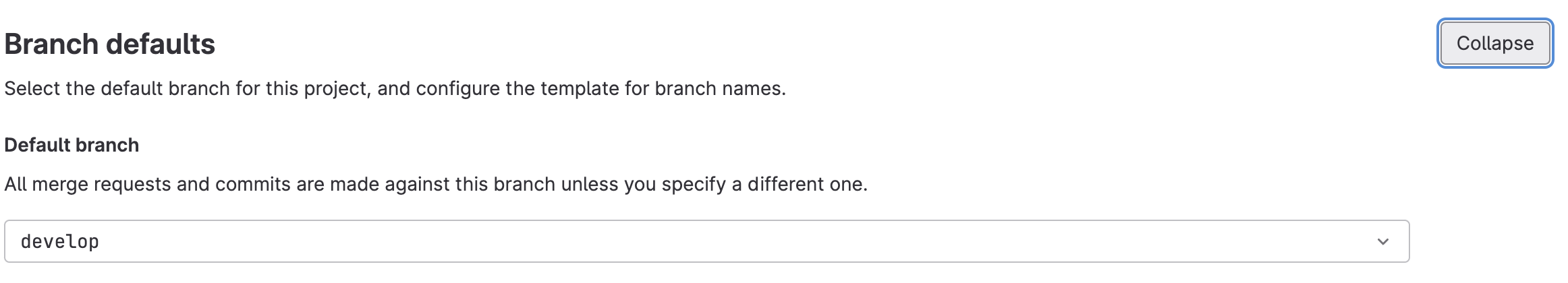 거기에 들어가신 후에 Collapse 버튼을 클릭하신 후에 Branch defaults를 원하는 브랜치로 설정해주시면 됩니다.