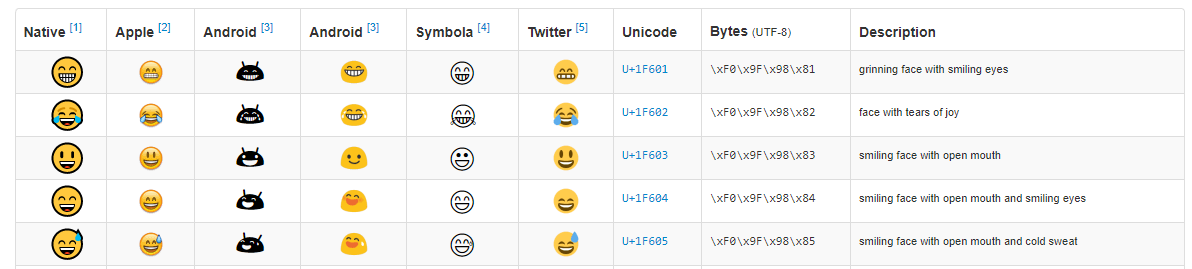 무슨 말인가하면, U+1F601인 이모지를 넣으려면 😁을 html에 넣어줘야 한다는 것입니다.