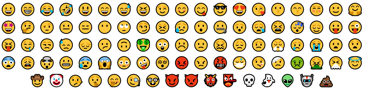 아래와 같은 것들이 이모지입니다. 저희가 하루에도 몇 번씩 사용하는 것들이죠?