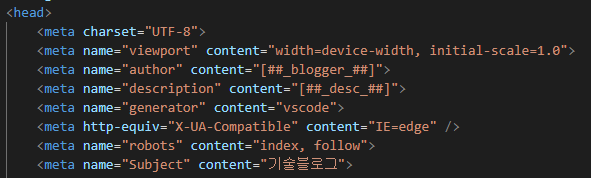 웹 사이트를 개발할 때 html 문서를 작성하게 되는데, html 문서의 상단에 head 영역에 여러 종류의 메타 태그가 들어갑니다. 아래는 제가 만든 티스토리 스킨 "LinuXkin"에 사용된 메타 태그들입니다.