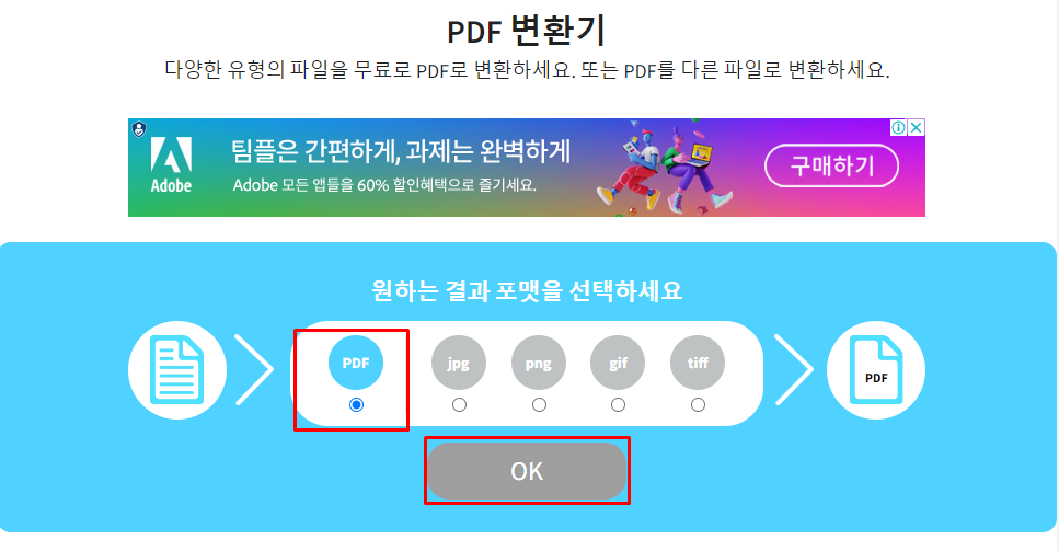 2. 그 다음에 원하는 결과 포맷을 PDF로 선택한 후 OK 버튼을 클릭하면 PDF 파일로 변환됩니다.