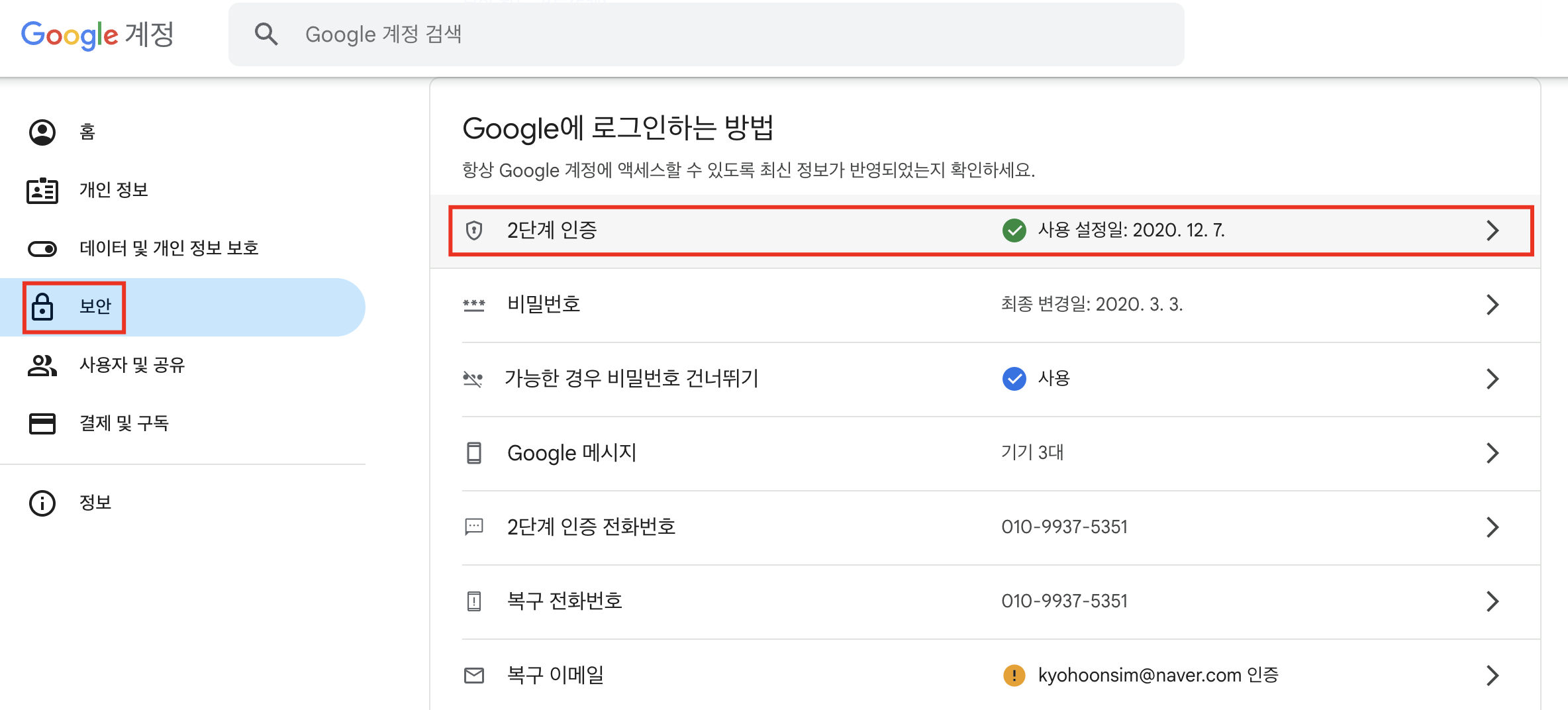 3. 2단계 인증에 들어갑니다.