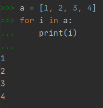 a[i]와 같이 인덱싱을 해줘야 리스트 요소인 1, 2, 3, 4 를 출력해줍니다.