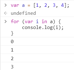 반면, 자바스크립트의 for in 문의 경우에는 요소의 인덱스값을 하나씩 전달합니다. 파이썬과 다르게 작동하기 때문에 주의하셔야 합니다.