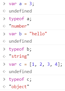 자료형을 알고 싶으면 typeof 뒤에 데이터를 넣어주면 됩니다.