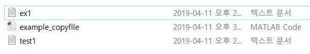 copyfile('ex1.txt', 'test1.txt'); % ex1.txt를 복사하는데 이름은 test1.txt로 변경해줘.