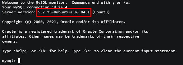 mysql 서버에 접속해서 버전을 확인할 수도 있습니다. 접속하면 바로 버전 정보가 나옵니다.