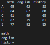 df = pd.DataFrame([[95, 92, 88], [84, 67, 88], [91, 99, 68], [87, 79, 81], [77, 92, 85]],